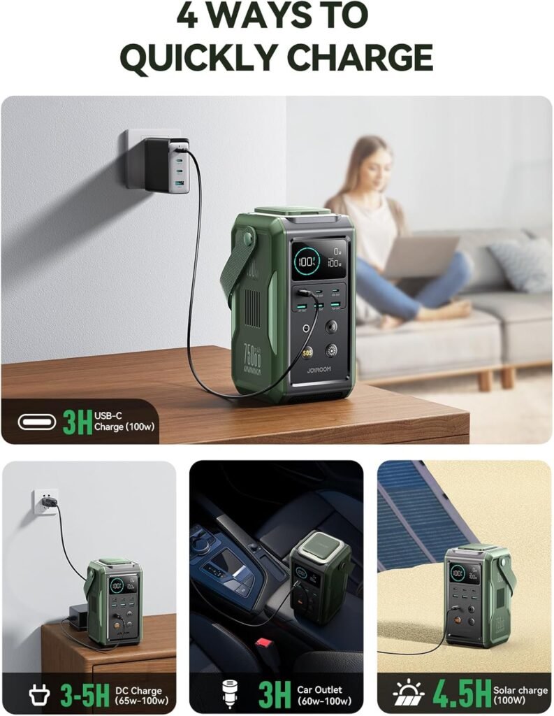 Whether you’re at home, in your car, or under the sun, the JOYROOM can be recharged via USB-C, AC adapters, car chargers, or solar panels (sold separately). This flexibility ensures you’ll never be stuck with a drained battery.
